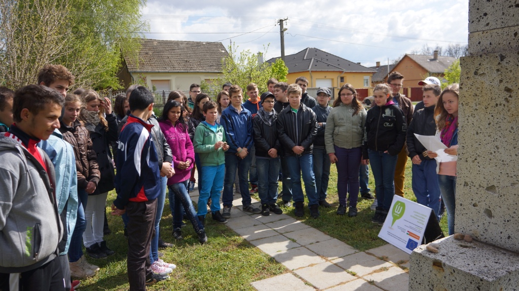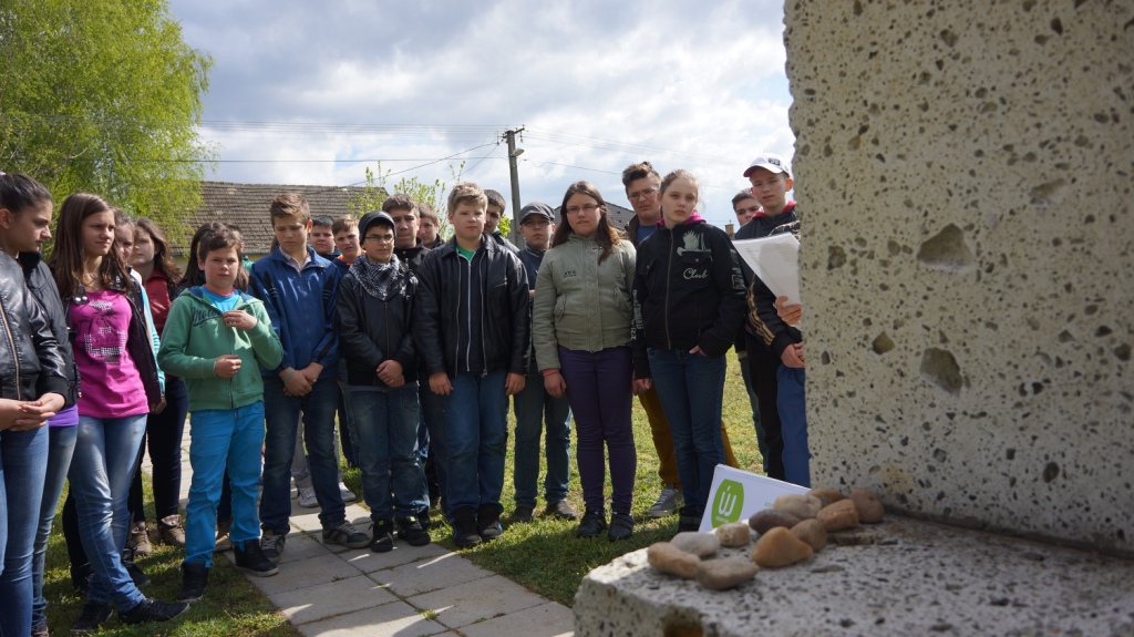A mai foglalkozásunk április 16-án, a holokauszt magyar áldozatainak emléknapján volt. Mivel az előző órákon a gyerekek megismerhettek sok-sok adatot, tényt, valóságos történetet, emberi sorsot a holokauszttal kapcsolatban, így a mai napon rendhagyó módon megemlékezést szerveztünk, és a fényeslitkei holokauszt emlékműnél tartottuk a foglalkozást.
