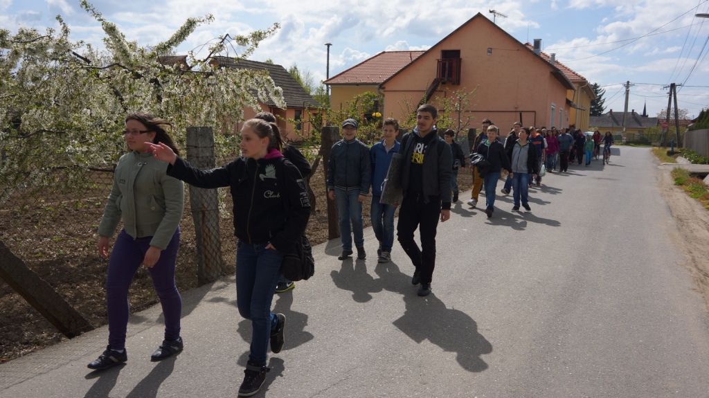 Gyalogosan sétáltunk el az emlékezés parkjához. Először Radnóti Miklós Töredék című versével idéztük meg azt a kort, aminek az áldozataira emlékeztünk a mai napon. Majd felolvastuk annak a 65 fényeslitkei zsidónak a nevét, akiket 1944 májusában a kisvárdai gettóból Auschwitzba deportáltak, és akik soha nem tértek vissza szülőfalujukba. Valamennyi név elhangzása után, zsidó szokás szerint, egy-egy követ helyeztünk az emlékműre, így emlékezve minden lélekre. Megható, torokszorító volt a csend a nevek hallatán… Miután minden név elhangzott felolvastam Mezei András Számok című versét.
