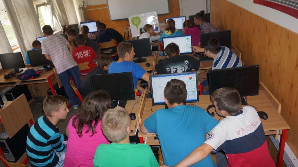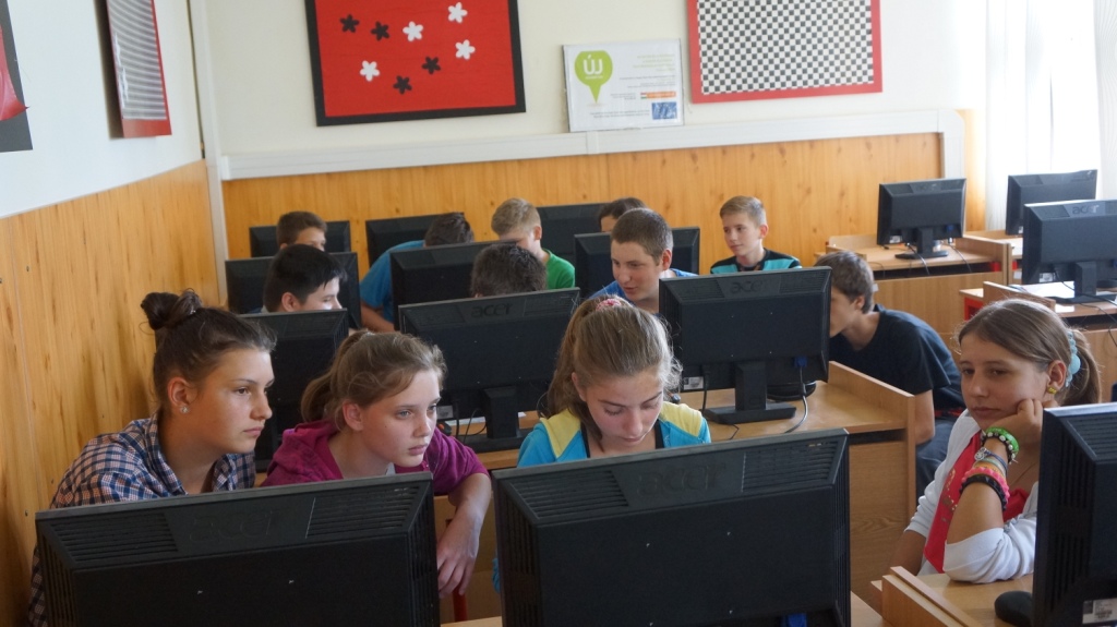 A mai foglalkozáson 5-6 fős csoportokban dolgoztak a gyerekek. Az volt a feladatuk, hogy az informatika teremben az internet segítségével minél több és minél fontosabb információkat gyűjtsenek partner iskolánk településéről.