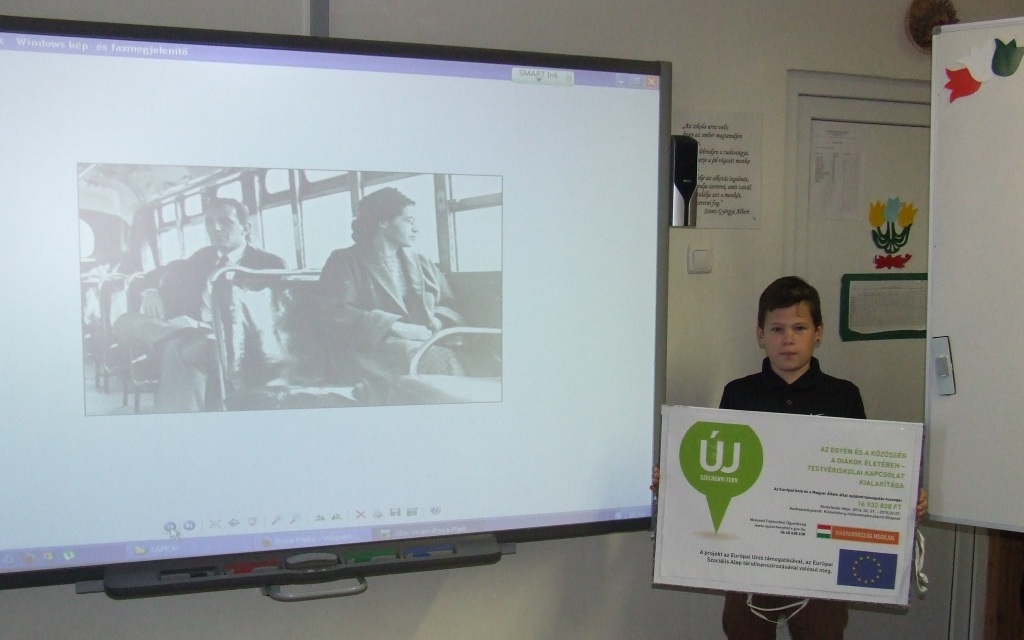 Ezt követően egy különleges, megtörtént esettel ismerkedtek meg Rosa Parks életén keresztül, amit a wikipédián található információk segítségével én meséltem el a gyerekeknek /http://hu.wikipedia.org/wiki/Rosa_Parks/.
